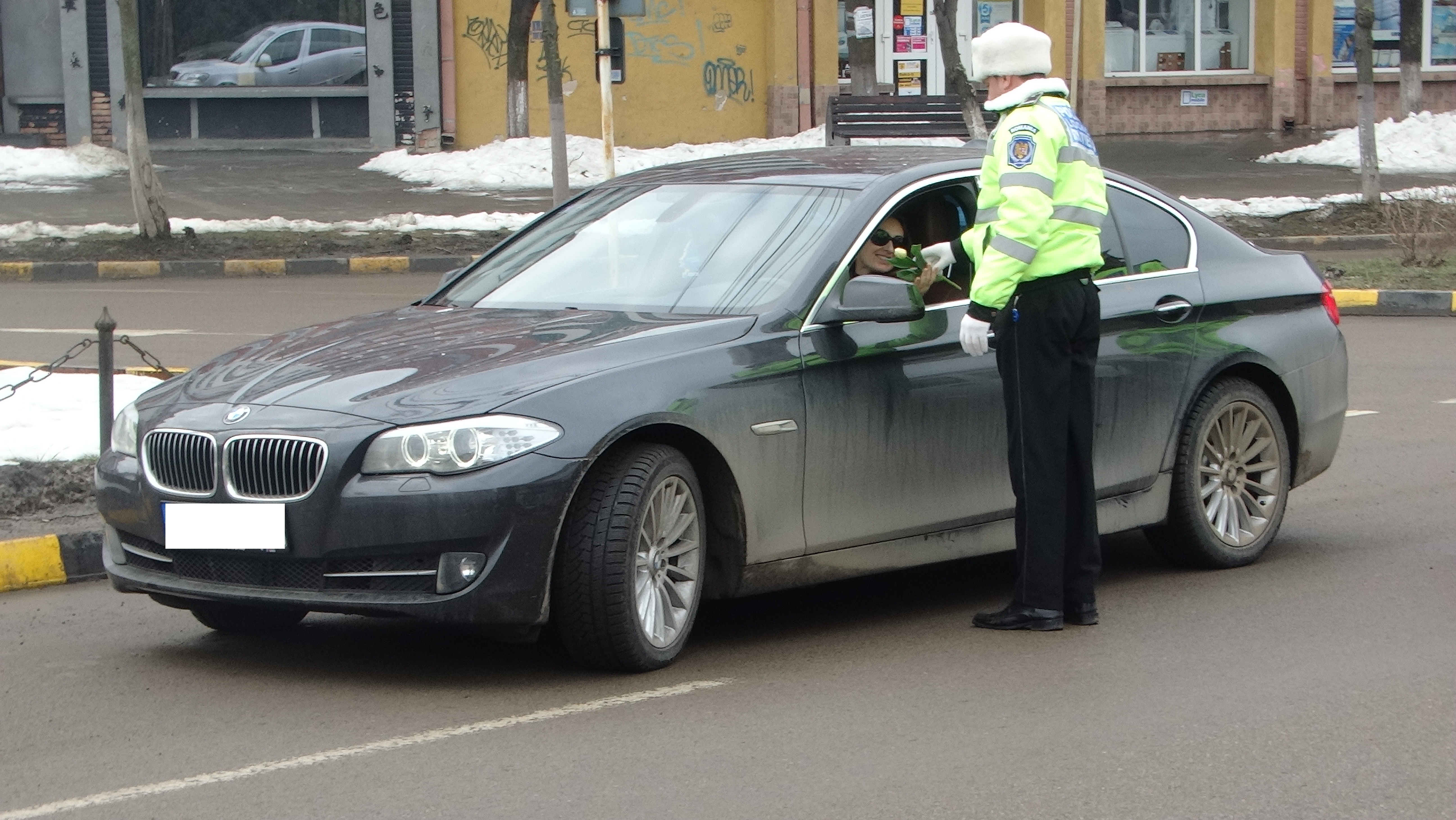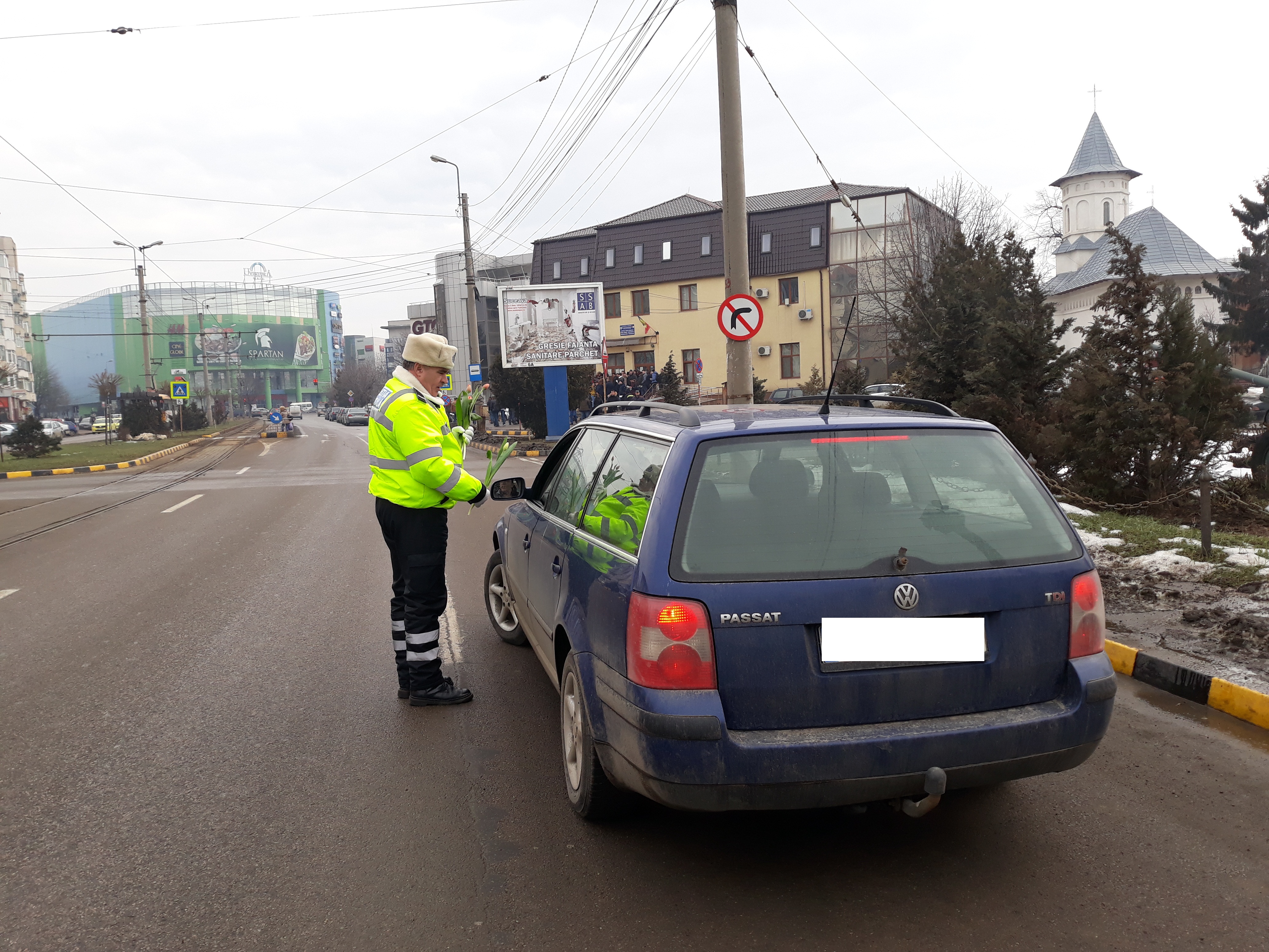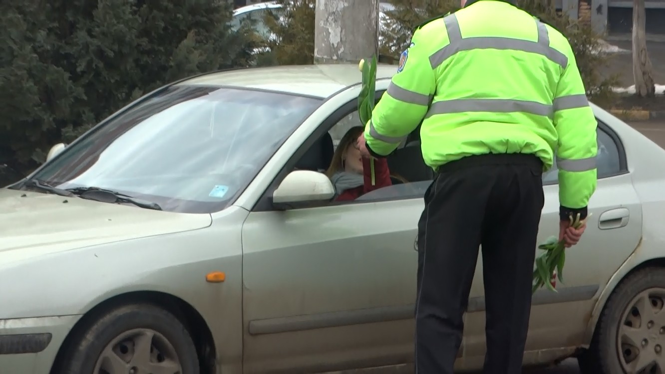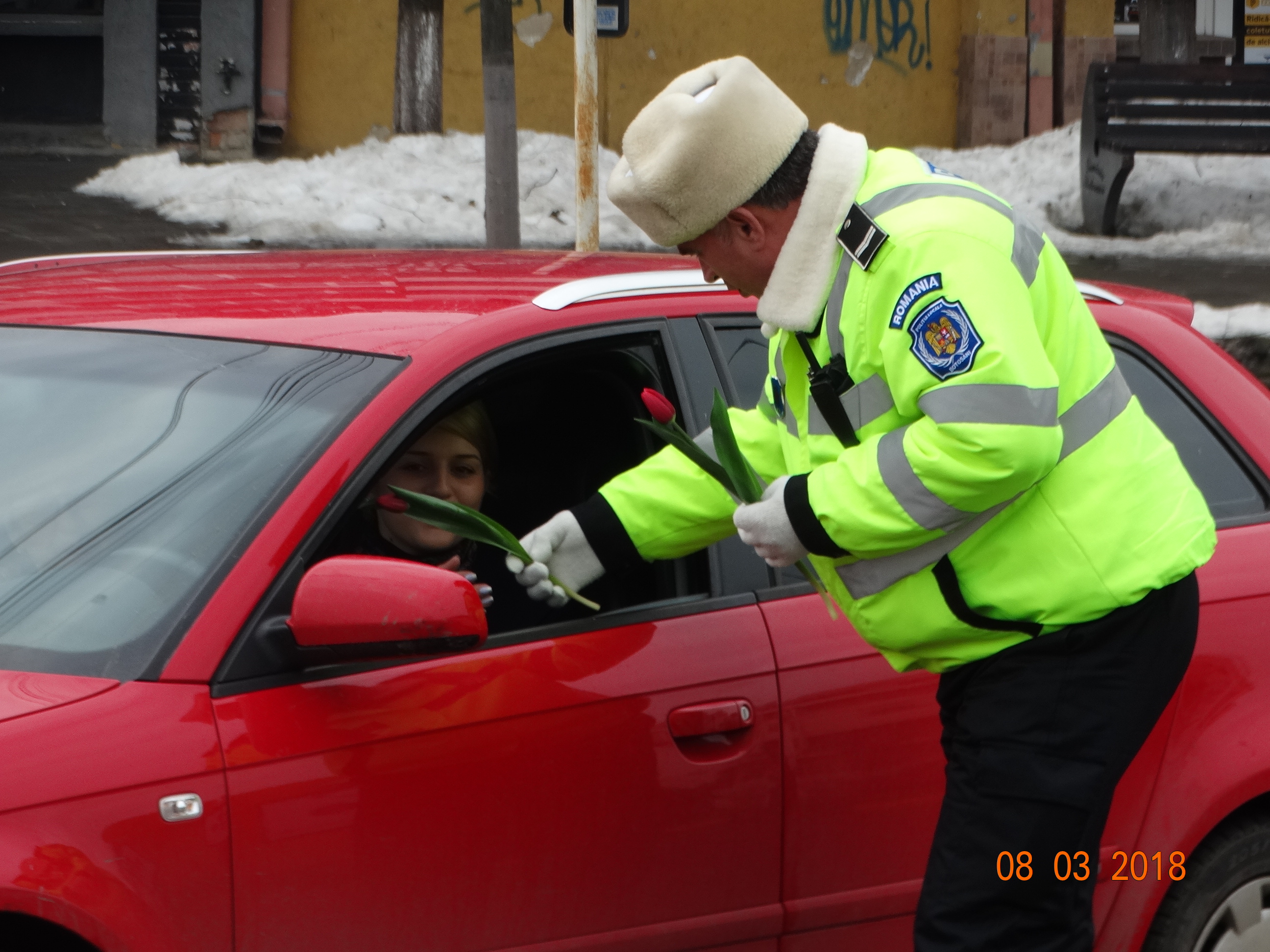 Cu ocazia zilei de 8 Martie, poliÈ›iÈ™tii locali din cadrul Biroului Rutier au sancÈ›ionat doamnele È™i domniÈ™oarele participante la trafic, dar au înlocuit procesul verbal cu o floare È™i o urare de Primăvară Frumoasă.